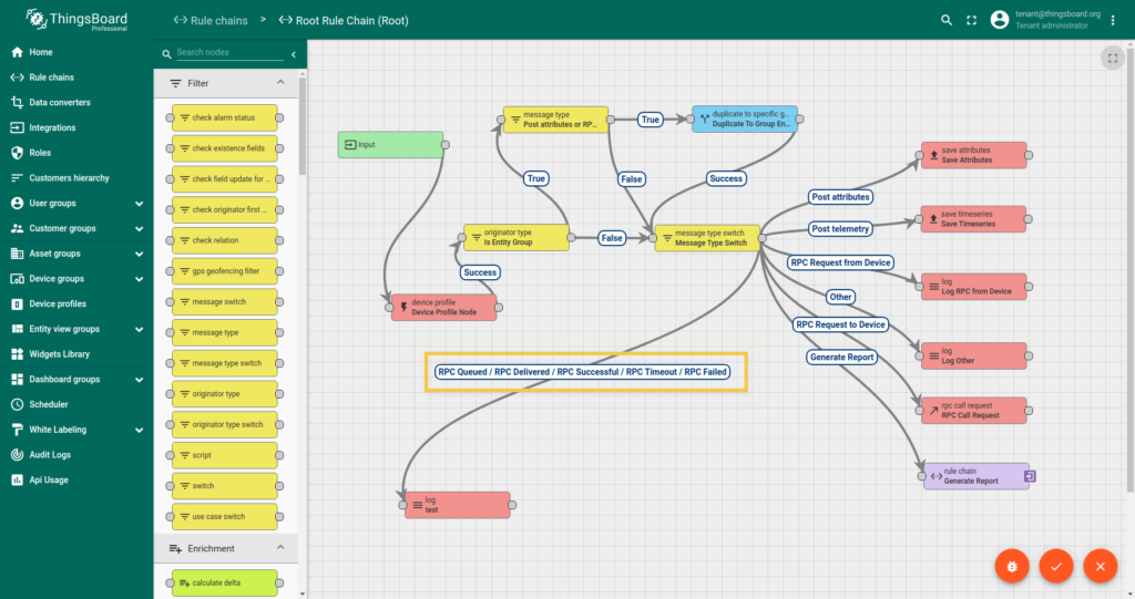 Rule Engine: Belirli bir alarm oluştuğunda otomatik RPC gönderen bir kural zinciri ekleyin.